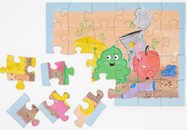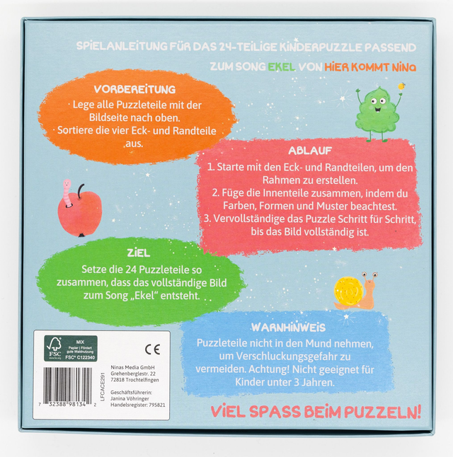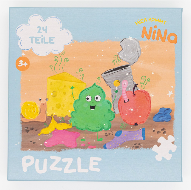 Wähle die Option ' "Ekel"-Puzzle mit Geschenkpapier' und erhalte das Puzzle eingepackt in Hier kommt Nina-Geschenkpapier für zusätzliche 2 Euro.